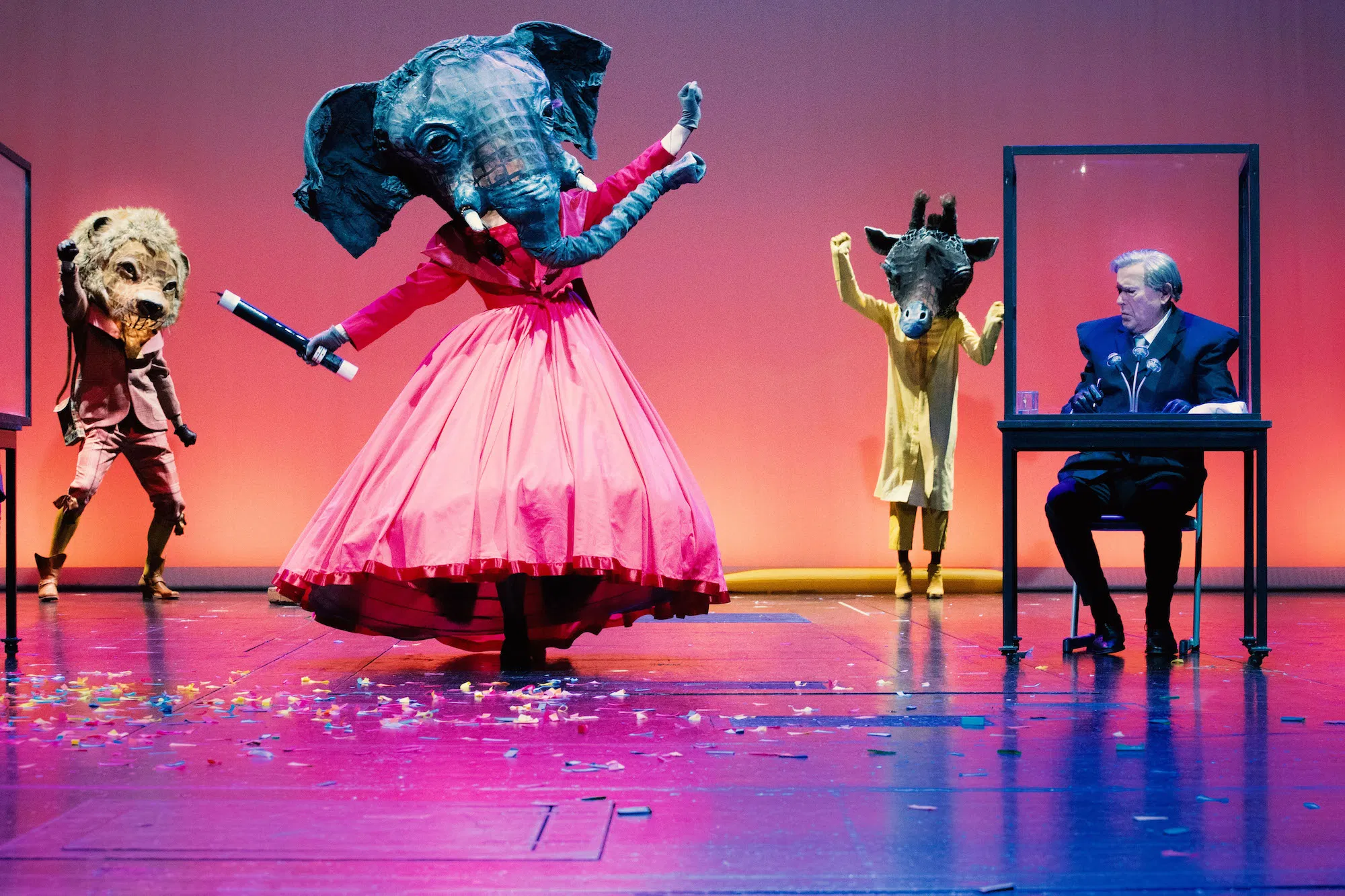 Bühnenbild & Kostümbild. Regie: Katharina Birch. Musik: Lars Ehrhardt. Video:… Konferenz der Tiere